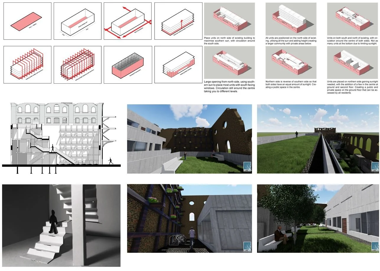 There is an increasing and global abundance of post-industrial structures left abandoned. These landscapes are left to deteriorate. This essay investigates how shifting aesthetic sensibilities, akin to those of the Romantic era, as well as deliberate placemaking, might re-cast these structures as beneficial elements within our urban space. Placemaking maximises the potential for public space by identifying physical existing assets such as heritage buildings, infrastructure and greenery, each commonly found in post-industrial sites. This essay evaluates current examples, and provides a guide for future architects, covering a range of post-industrial typologies and commenting on their potential to be repurposed as a public landscape. As well as operating at this typological level, the essay applies the various strategies explored in this study to a local example of post-industrial ruin in Leeds. The methodologies are applied with the aim of establishing quality public realm while simultaneously preserving the post-industrial ruin as a new staple of cultural heritage.