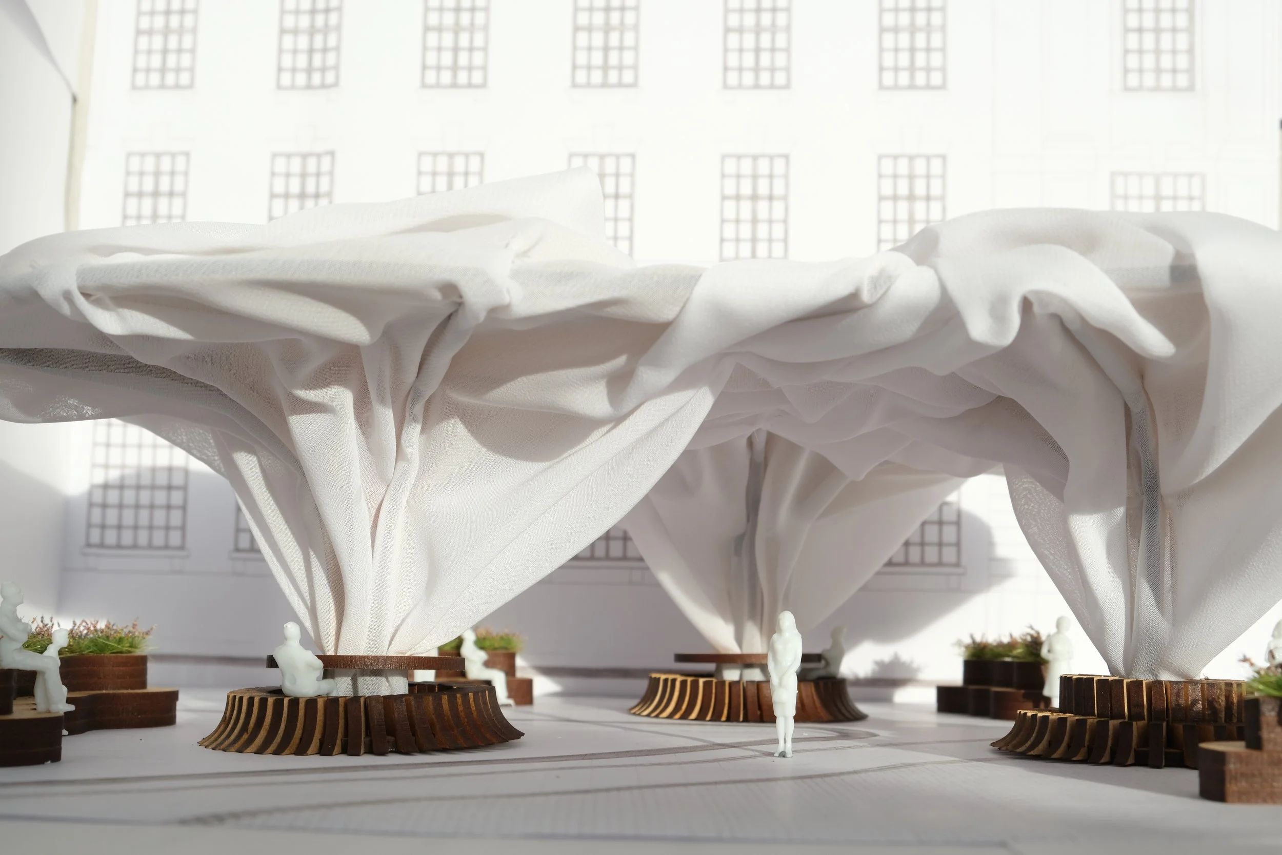 With a strong emphasis on research, contextual engagement and design speculation, semester two focuses on the opportunities offered by public programmes that respond to the physical, as well as social, cultural or environmental conditions of an urban context. Through the design of a small-scale public space intervention, students learn to critically develop their spatial and communication skills to a professional standard, while also working with scale models as thinking and propositional tools to explore architectural form, the inhabitation of space, material approaches and contextual engagement in architectural design. This project aims to enhance the urban landscape of Leeds city centre by responding to specific aspects, events, and issues in the public space, which have been observed by students and have inspired them.